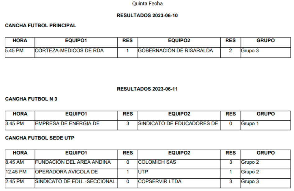 Fecha 5, 10 y 11 de junio de 2023
