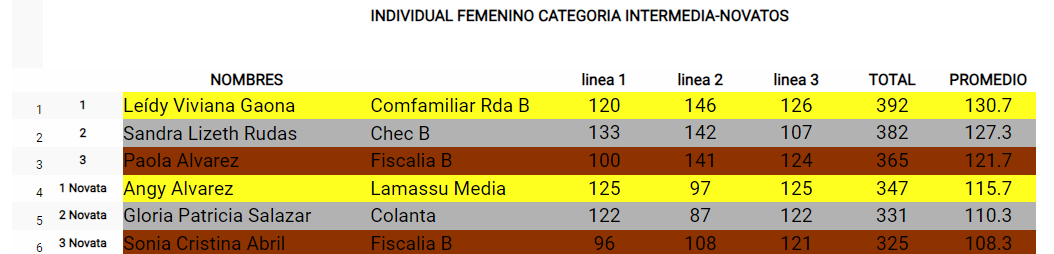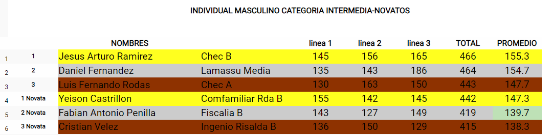 Mientras que en la rama masculina intermedia, Jesús Arturo Ramírez (Chec B) ocupó el primer lugar, Daniel Fernandez (Lamassu Media) en el segundo puesto y Luis Fernando Rodas (Chec A) cerró el podio.
