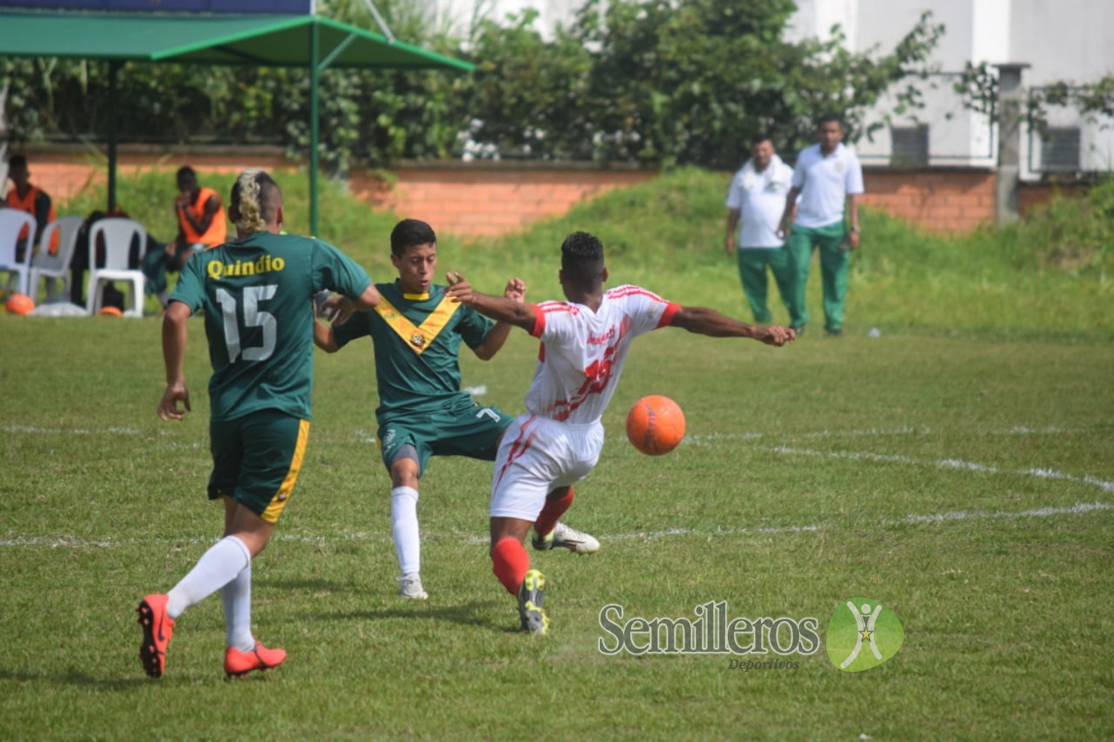 El grupo 2 conformado por Risaralda, Guaviare, Quindío, Santander y Atlántico continuaron la acción en la cancha Padre Valencia, al occidente de Pereira. A primera hora Quindío se midió a Atlántico con resultado adverso 0-3.