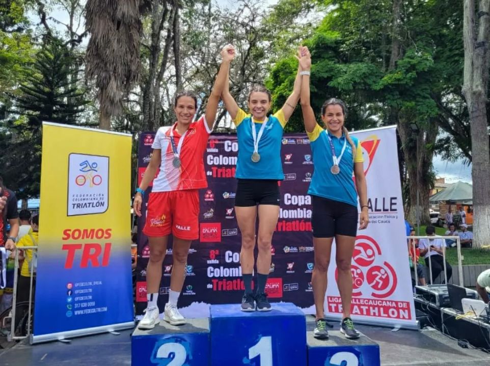 Foto/Sec. Deporte Caldas. Copa Colombia de Triatlón podio elite femenino.