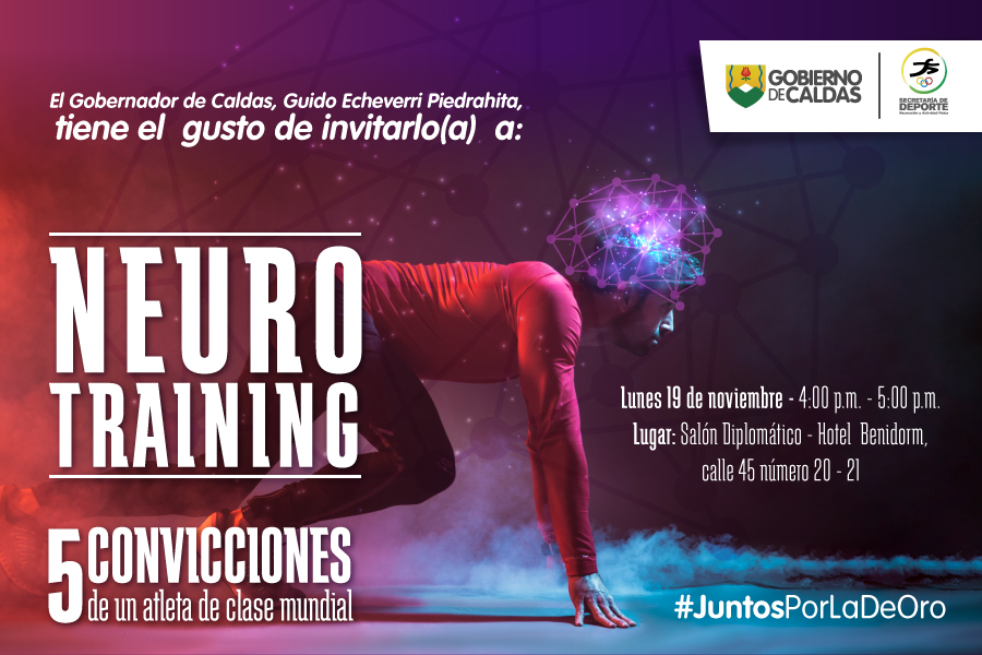 El próximo lunes 19 de noviembre, todo el ecosistema del deporte del Eje Cafetero y especialmente de Caldas, se encuentra invitado al NEURO TRAINING «5 convicciones de un atleta de clase mundial», evento que se llevará a cabo en el el salón diplomatic del Hotel Benidorm de Manizales.