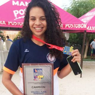 A Judith Cardona, la espigada jugadora risaraldense de Vóley Playa...